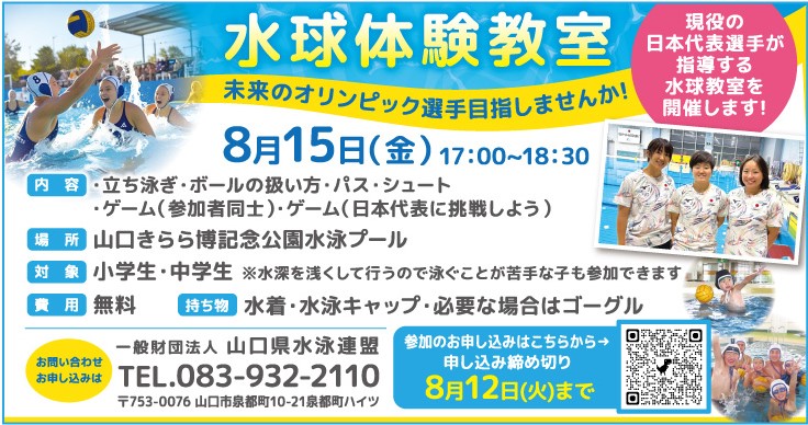 兼 「第79会国民スポーツ大会水泳競技大会 山口県予選会」要項【変更】